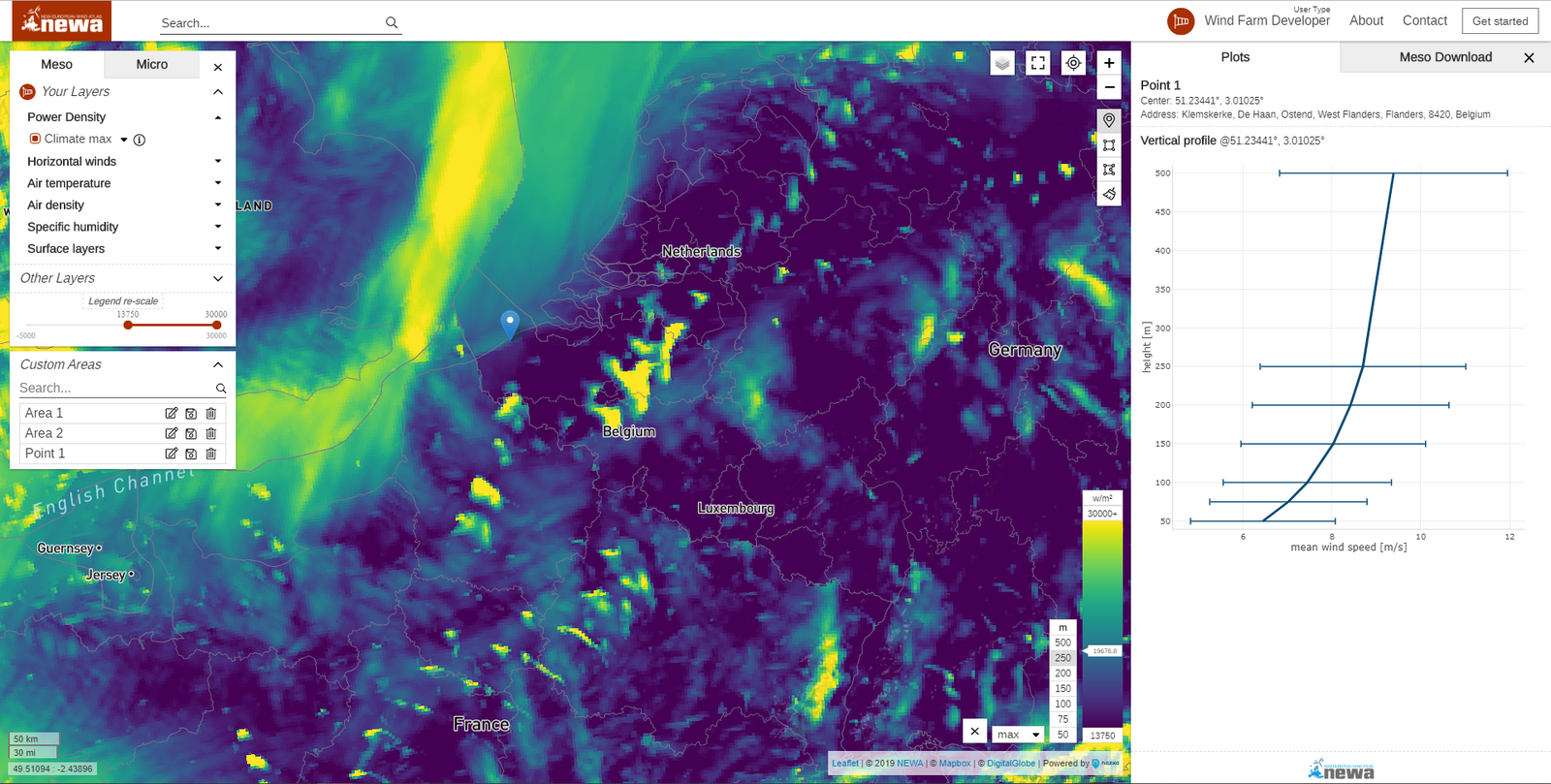 So Nazka designed a map application from which you can view and download wind speeds, air density & humidity, … throughout Europe. This map was part of the European project NEWA, which collected data on wind and designed algorithms to predict wind speeds. This way you can easily spot which areas of Europe are better suited for new turbines.